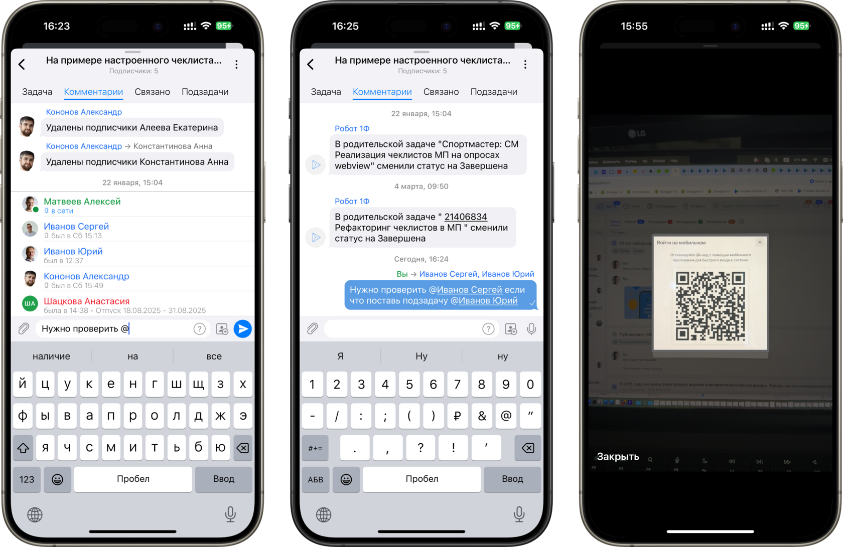 - Теперь можно быстро искать и добавлять пользователей в тексты комментариев для упоминания через значок @.