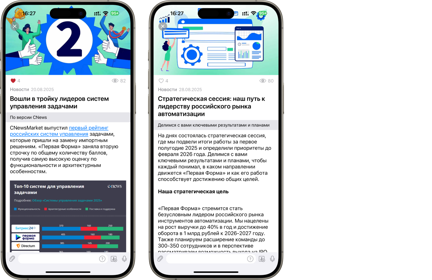 - Обновили вид новостей — в них отображаются реакции, описания и форматирование.