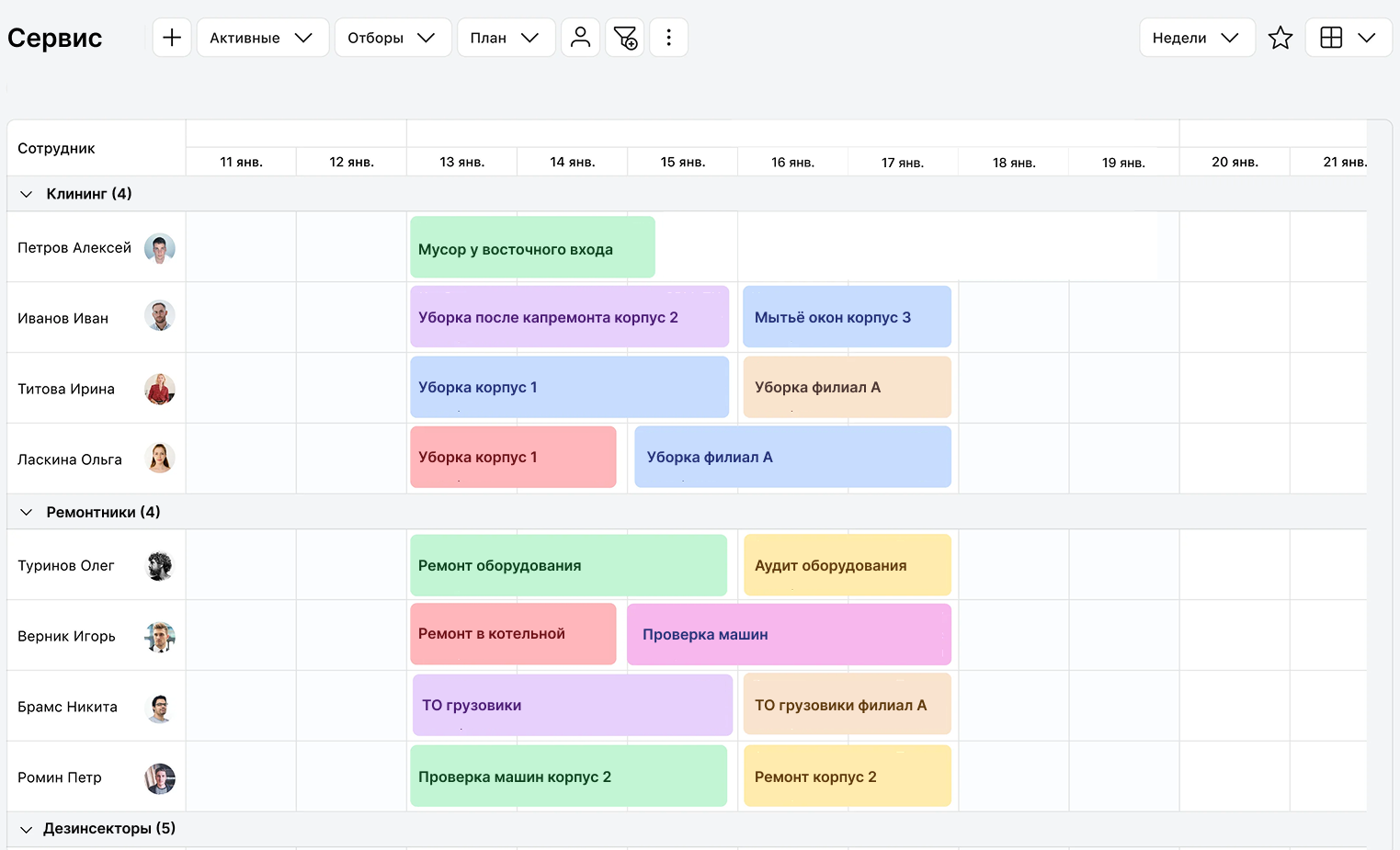 Как правило, сервисные компании не только управляют эксплуатацией зданий, но и отвечают за уборку на объектах недвижимости и прилегающей территории. Поэтому важно, чтобы решение позволяло: