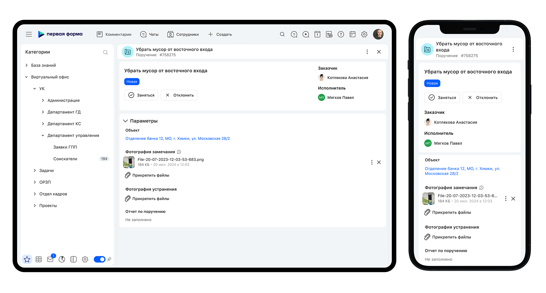 Facility services, которая обслуживает здания в нескольких регионах России. При расширении компании потребовалось ускорить процесс найма и оформления сотрудников и внедрить систему контроля работы выездных специалистов на всех объектах.
