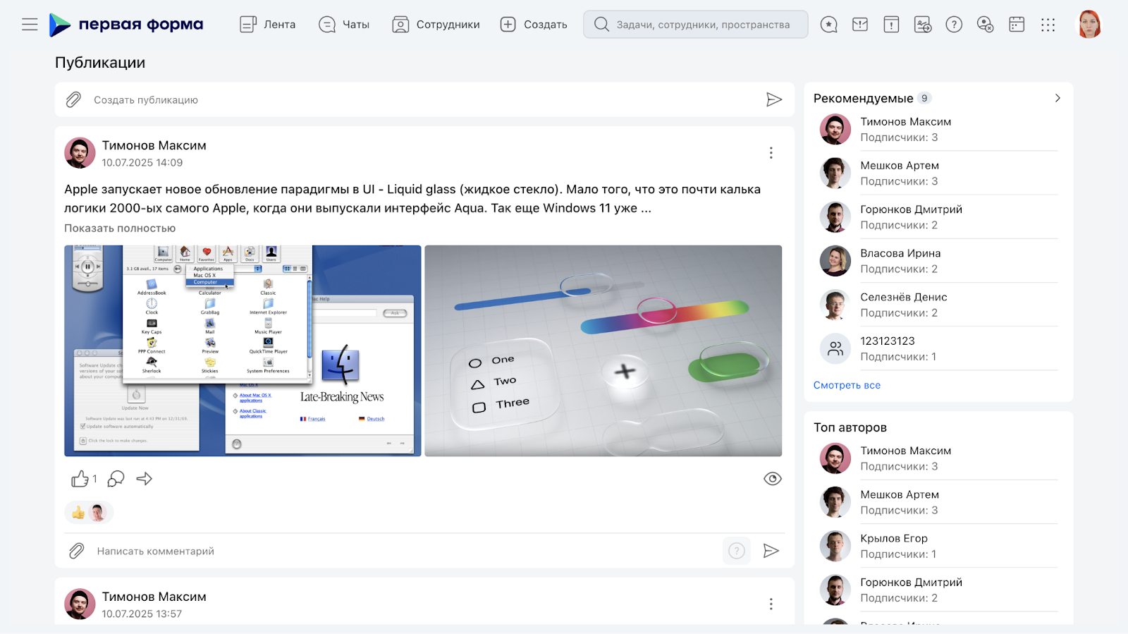 «Новые функции корпоративного портала позволяют создать живое информационное пространство, где коллеги могут делиться знаниями, обсуждать проекты и получать актуальные новости. Это особенно важно для крупных организаций с распределённой структурой», — комментирует генеральный директор «Первой Формы» Денис Селезнёв.